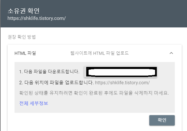 위 그림처럼 소유권 확인의 파일을 다운로드하고 첨부해주면 된다.